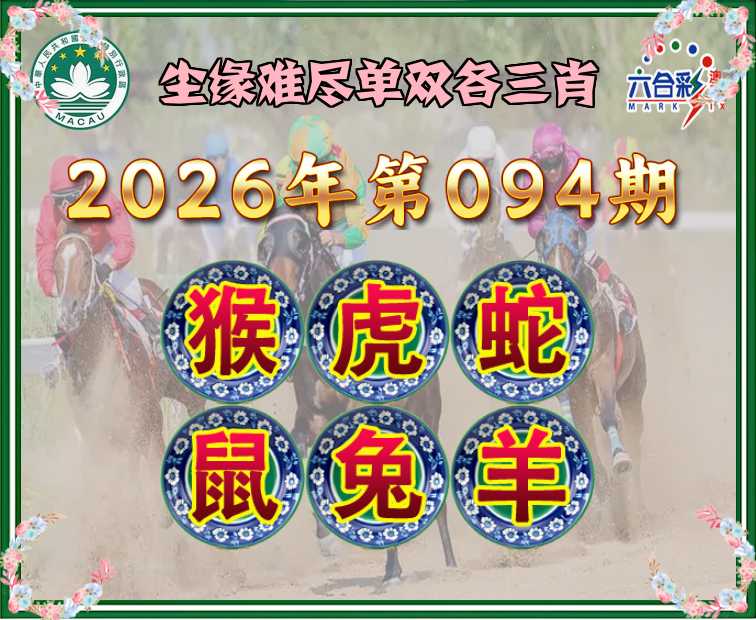 094期: 尘缘难尽 单双各三肖【猴..蛇.鼠.兔.羊】开:虎17