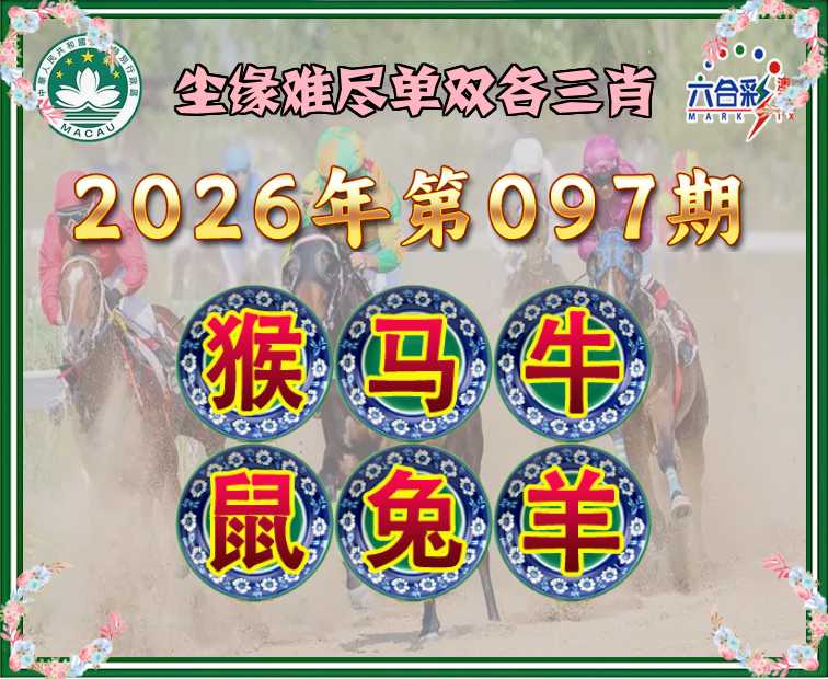 097期: 尘缘难尽 单双各三肖.马.牛.鼠.兔.羊】开:猴11