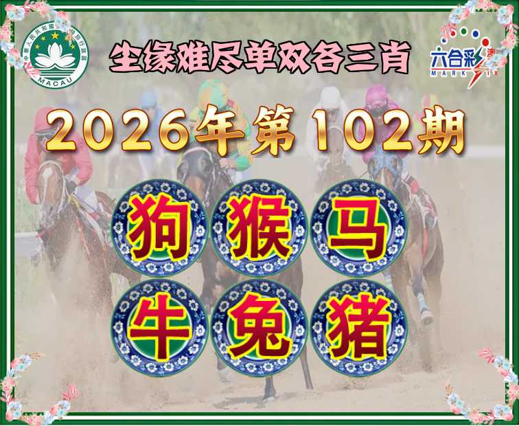 102期: 尘缘难尽 单双各三肖【狗.猴.马.牛.兔.】开:猪20