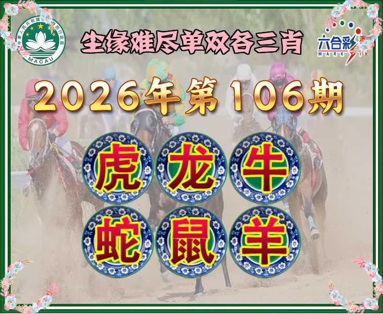 106期: 尘缘难尽 单双各三肖【虎.龙.牛.蛇.鼠.羊】开:00准
